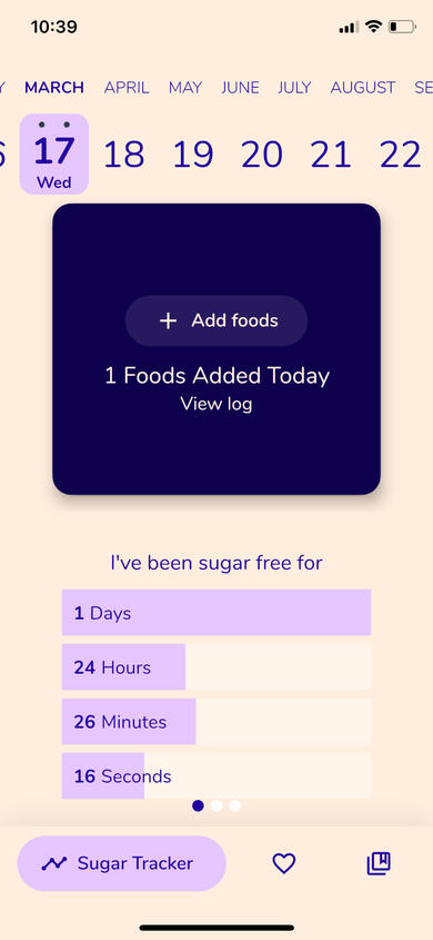 Along with tracking days you are sugar-free, helps you build new habits and provides ongoing motivation with inspirational messages