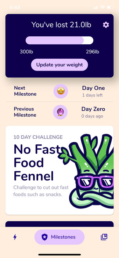Track and celebrate your milestones from 1 day, to 1 week, to 1 month and beyond.